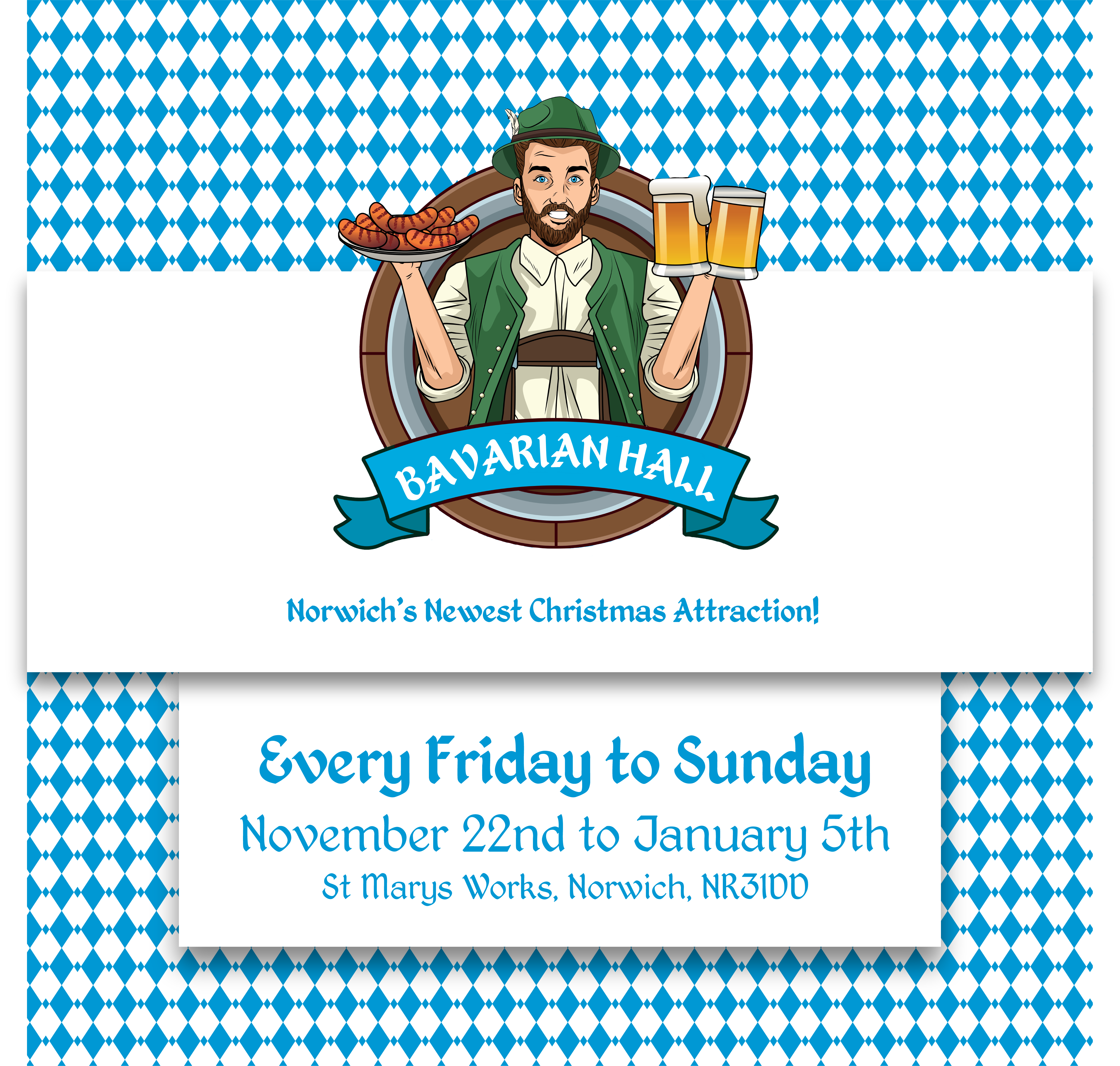 Our Bavarian Beer Hall is a Norwich first and a true highlight of Christmas 2024. This 36-metre-long, purpose-built German beer lodge promises live music, DJs, and endless sing-alongs, inviting guests to dance the day or night away!